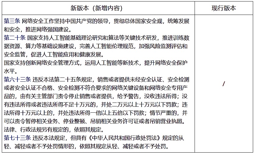 (一)新版本将原第十八条调整为第十九条,并删去第二款。这一变化契合人工智能技术发展所带来的网络安全新挑战与机遇的时代背景,充分体现立法对前沿技术的精准把握与响应。