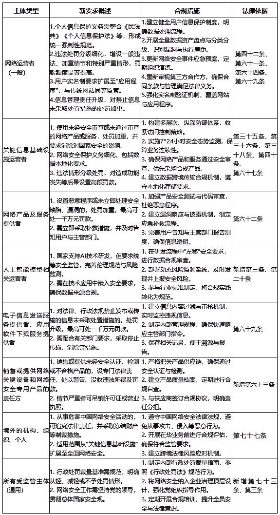 本次《网络安全法》的修订,标志着我国网络安全监管从原则性框架向精细化、体系化与强执法化的重要转变。新法通过大幅提升罚则、扩大责任主体与处罚范围、强化关键信息基础设施保护义务、并将人工智能等新技术应用纳入监管视野,对各类市场主体提出了更高要求的合规责任。企业必须从被动合规转向主动治理,系统性地构建与运营风险相匹配的网络安全与数据保护内控体系,方能在日益严峻的监管环境下实现可持续健康发展。