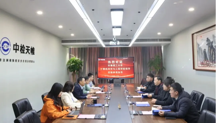 11月18日,安徽理工大学计算机科学与工程学院党委书记王永祥一行到访中检天帷,双方就校企合作、网络数据安全领域人才培养进行了深入交流。