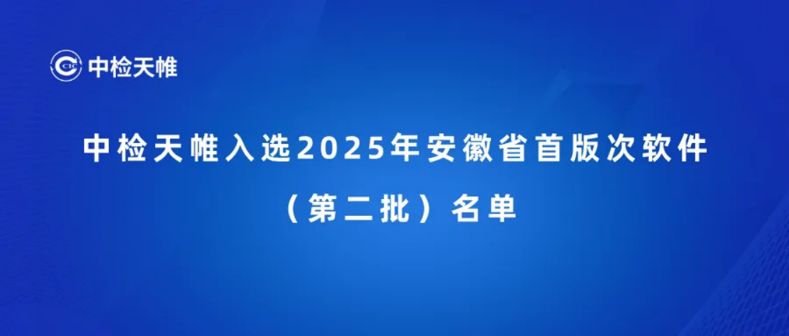 中检天帷入选2025年安徽省首版次软件(第二批)名单